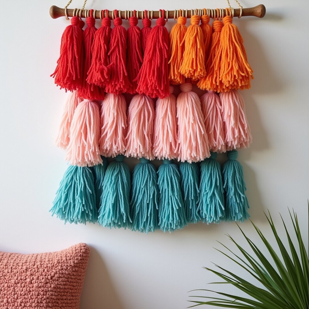 Imagine a wall hanging full of colorful, fluffy tassels. It adds movement and fun to your space, perfect for a bohemian or eclectic look.