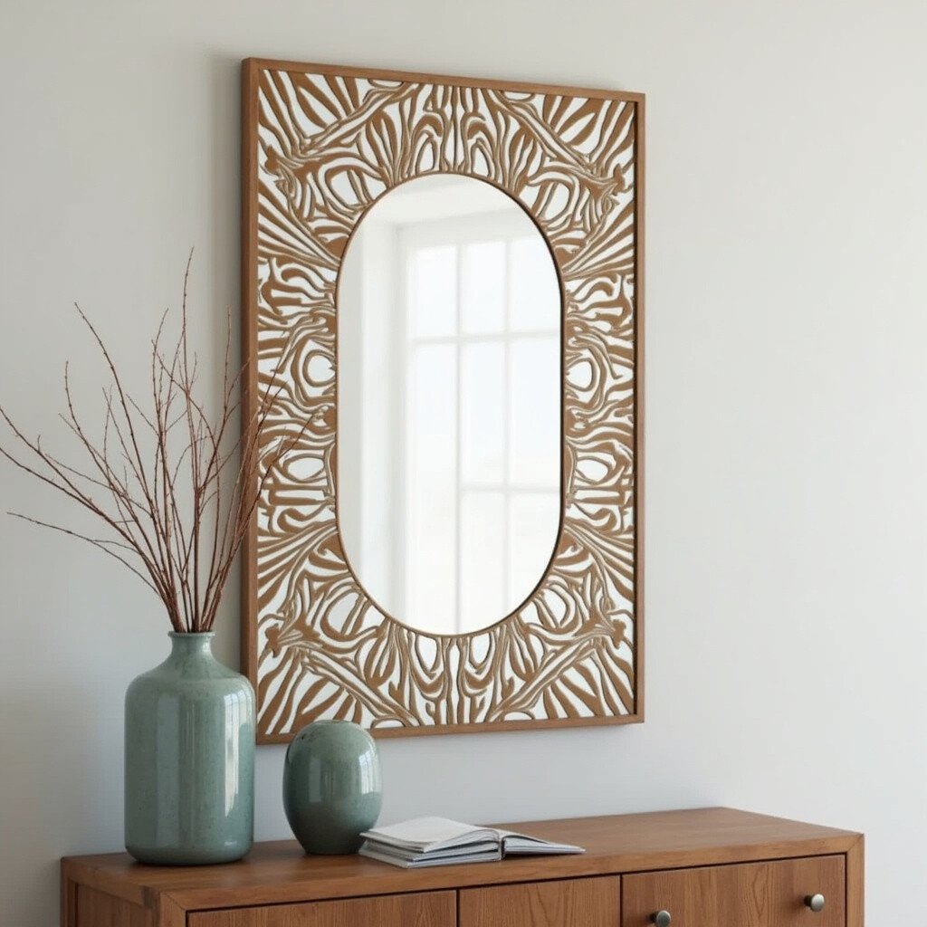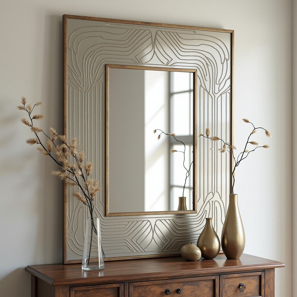 Abstract wave patterns can make your mirror look like it’s in motion. This dynamic design is perfect for adding a bit of energy to any room.