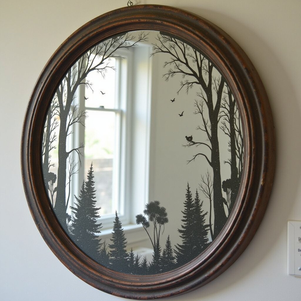 Create a sense of mystery and wonder with a forest-inspired design. Sandblast trees, animals, and other woodland elements onto your mirror.
