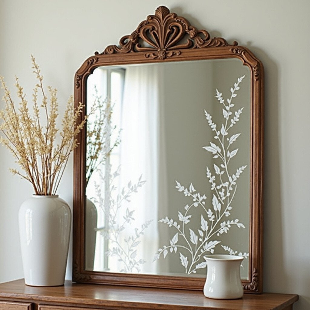 Imagine your mirror adorned with delicate leaves and branches, as if a gentle breeze had left its mark. Sandblasting allows you to etch intricate nature-inspired designs onto the mirror’s surface, creating a serene and calming effect in any room.