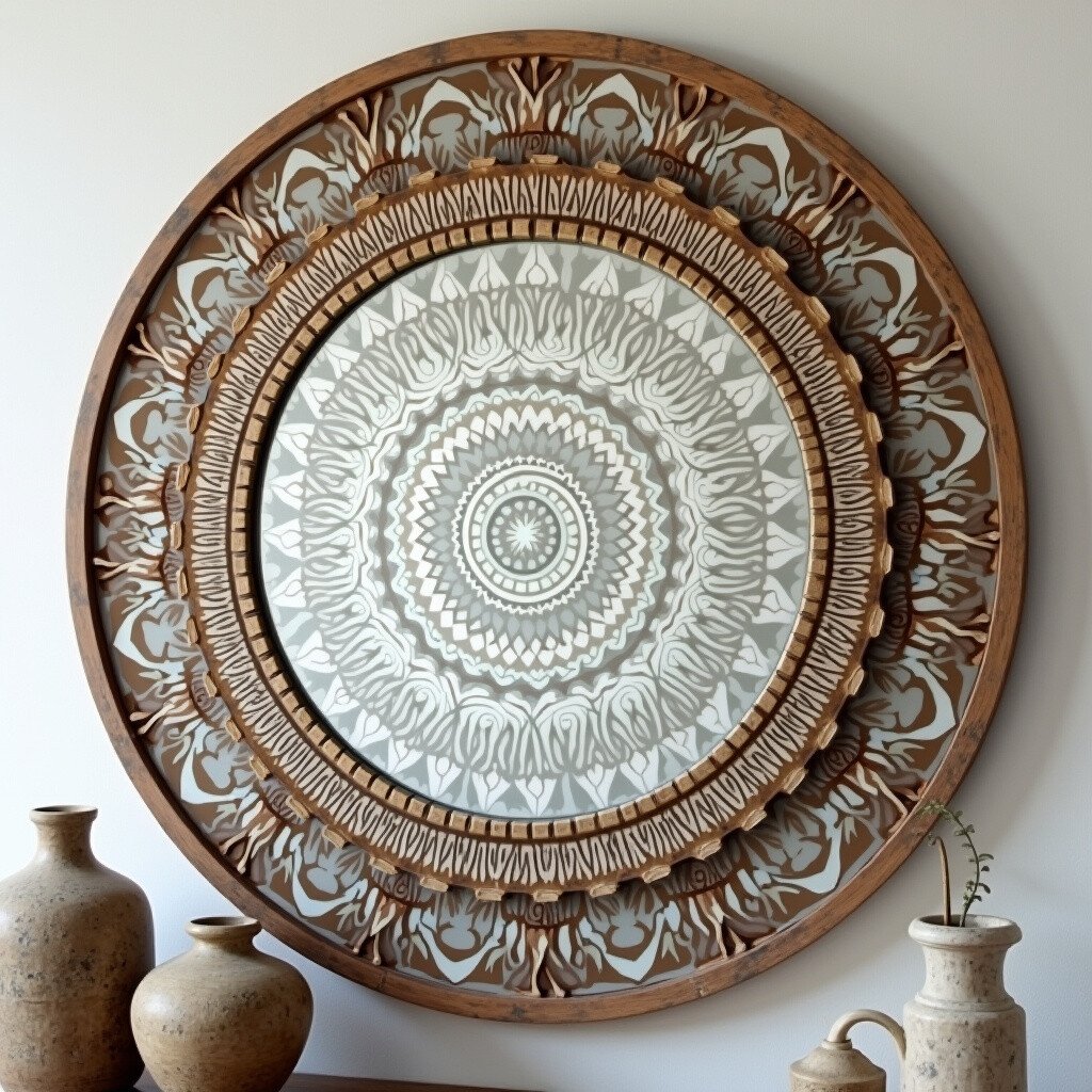 This design is both unique and mesmerizing. It’s perfect for meditation spaces or any room where tranquility is desired. Use different mandala patterns for each mirror to keep things interesting.