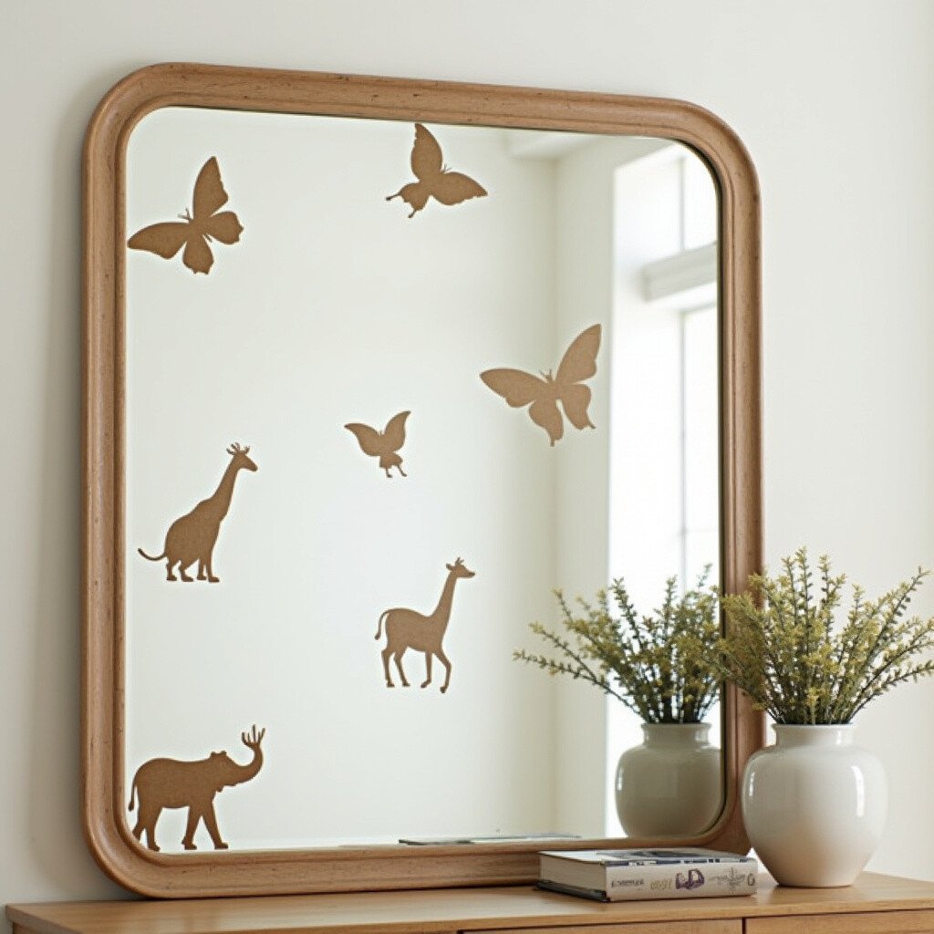 Bring the wild indoors with animal-themed stencils on your vintage mirror. Consider silhouettes of birds, butterflies, or even elephants. This idea is playful and can be tailored for children’s rooms.