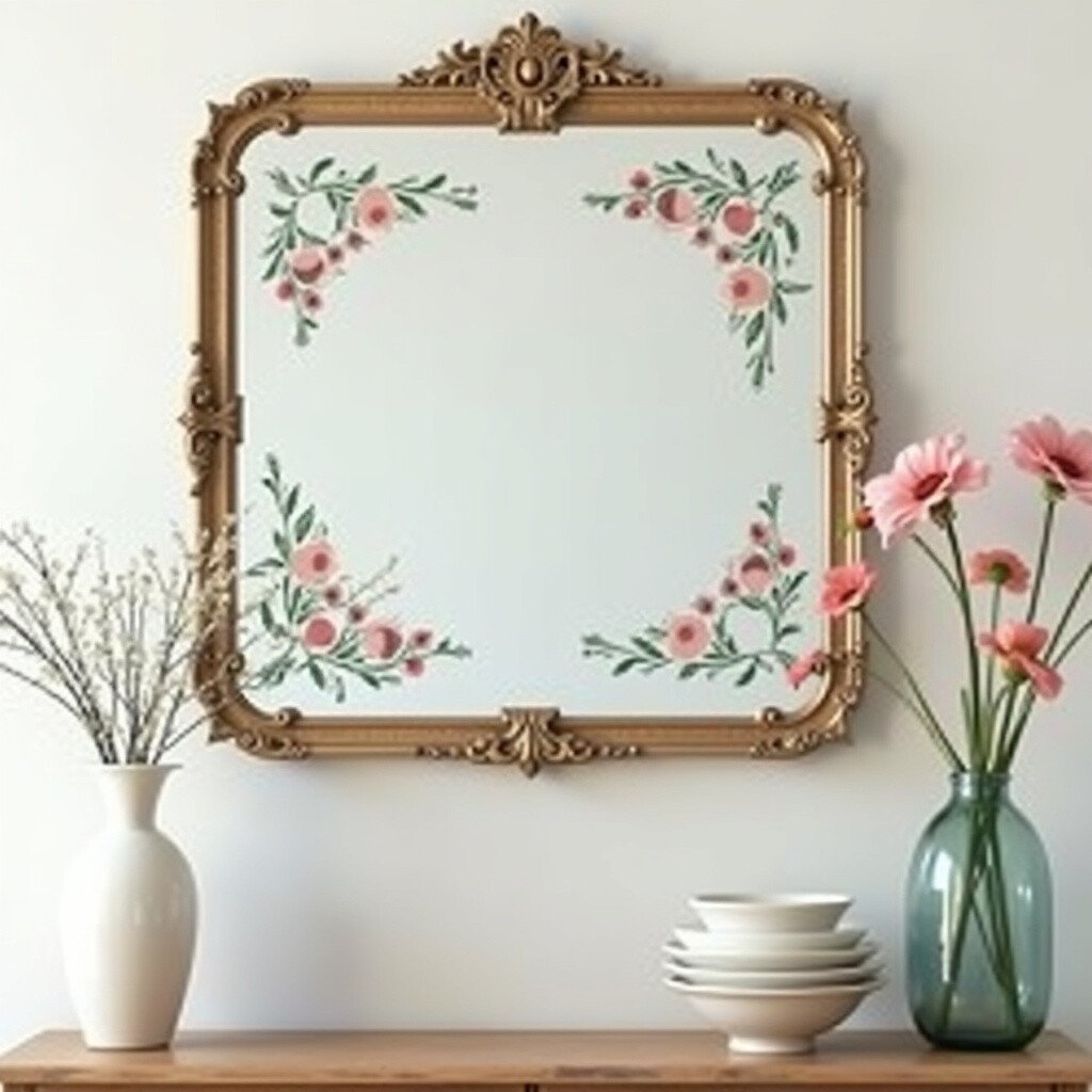 Picture a vintage mirror adorned with delicate floral stencils. This idea brings a garden-like feel to any room, making it bloom with elegance. The flowers can be painted in pastel or bold colors, depending on your style.