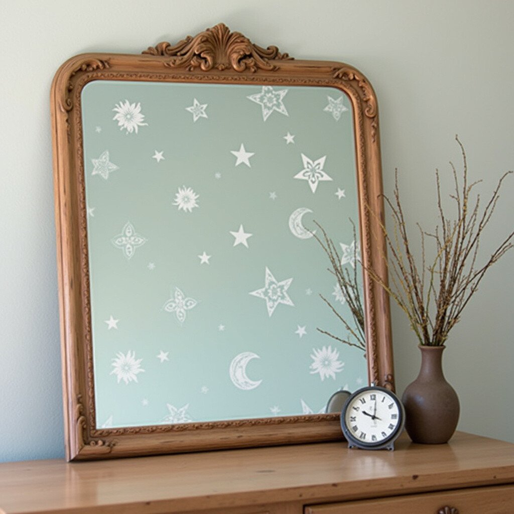Ornate stencils can transform a plain vintage mirror into a masterpiece. Think swirling vines, intricate lace, or baroque patterns. These designs add a luxurious feel to any space.
