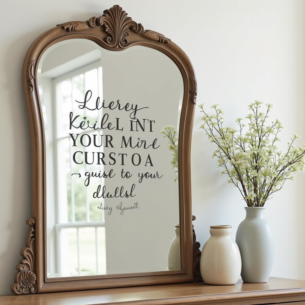 Imagine words of inspiration elegantly stenciled on a vintage mirror. Quotes or single words like ‘Dream’, ‘Love’, or ‘Joy’ can add a personal touch. This idea speaks to the heart every time you look at it.