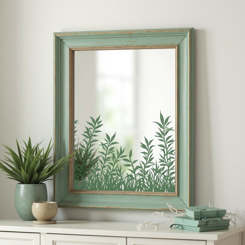 Bring the outdoors in with nature-inspired stencils on your vintage mirror. Think leaves, trees, or mountains adorning the glass. This idea adds a touch of tranquility to your home.