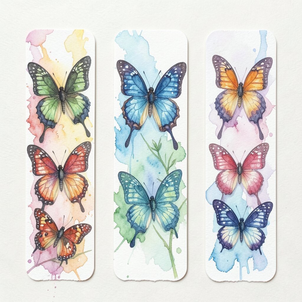 Personalize them with different colors or butterfly species. This idea is cost-effective and a great gift for book lovers. Plus, it’s a practical way to use your watercolor skills.
