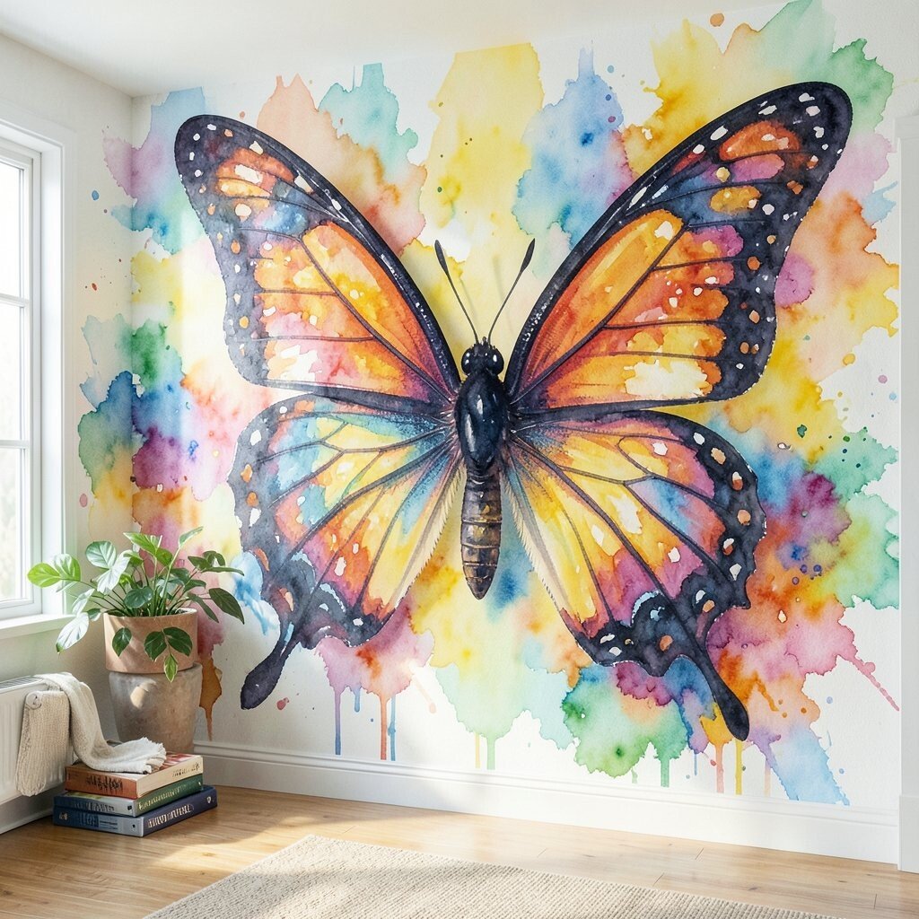 Make a bold statement with a watercolor butterfly wall mural. This large-scale project involves painting an entire wall with a butterfly theme. It’s perfect for creating a focal point in a room.