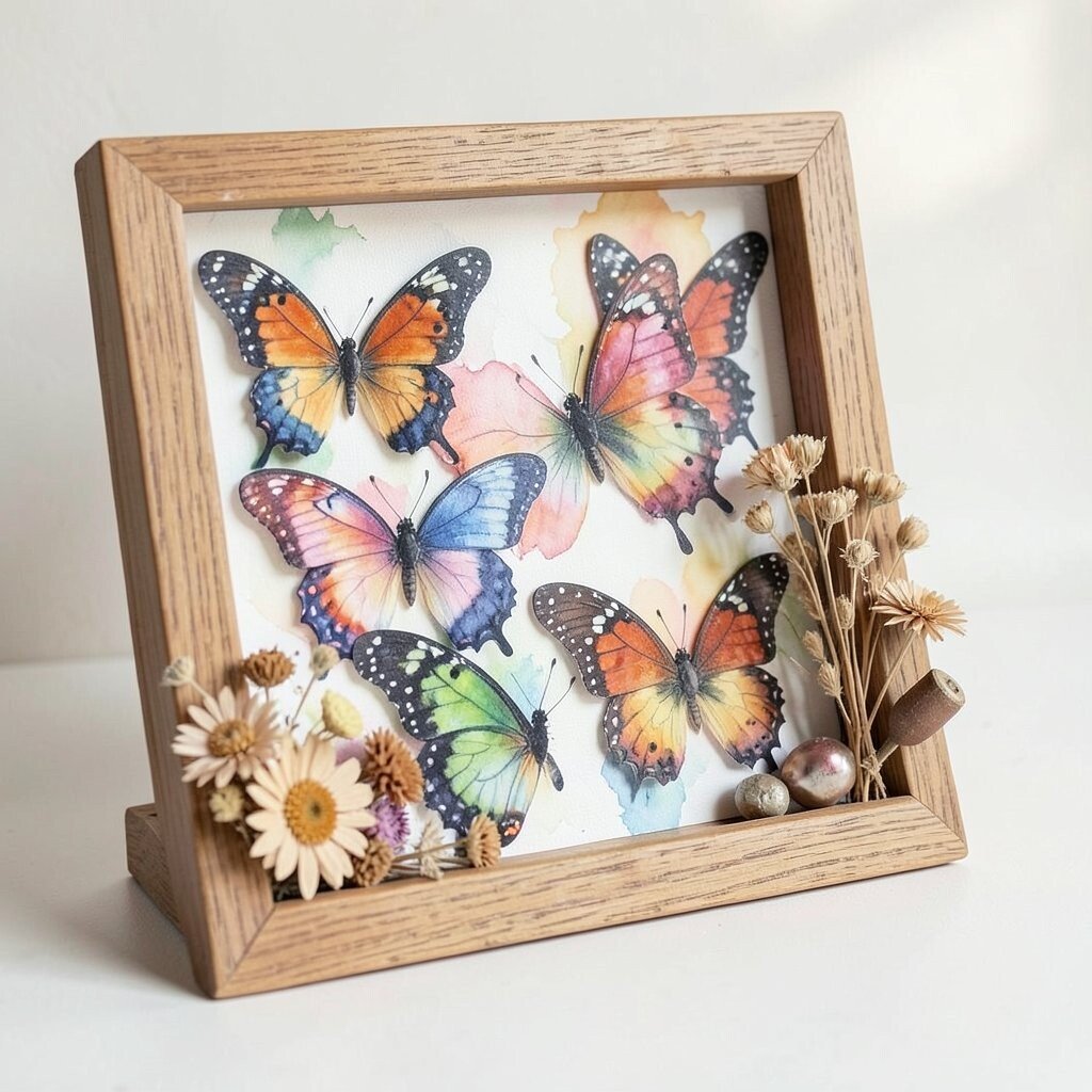 Create a three-dimensional art piece with butterfly shadow boxes. This involves painting butterflies and arranging them in a decorative box. It’s a unique way to display your art.
