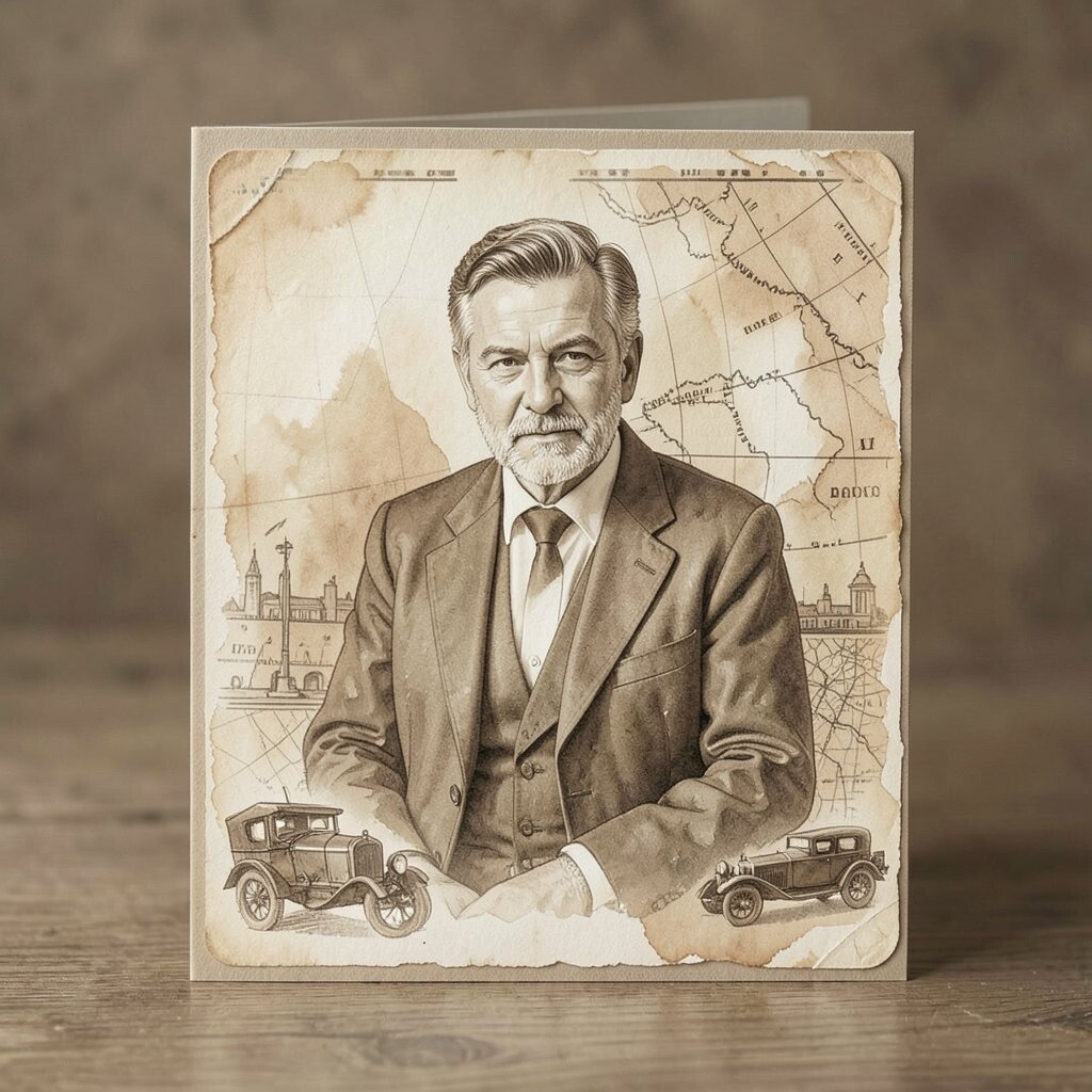 Step back in time with a card that has a vintage feel. Think sepia tones and classic designs like old cars or vintage maps.