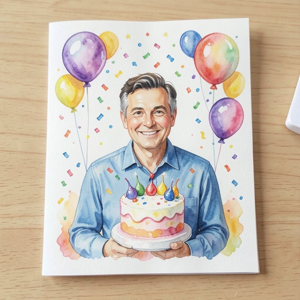Capture the joy of celebrations with a card that has a festive theme. Think balloons, confetti, or a watercolor cake to add a touch of cheer.