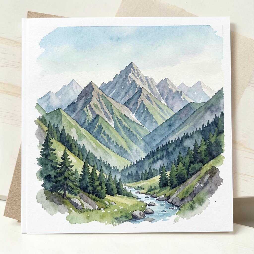 Capture the grandeur of mountains with a watercolor card that reflects strength and stability. Perfect for dads who love hiking, camping, or just the great outdoors.