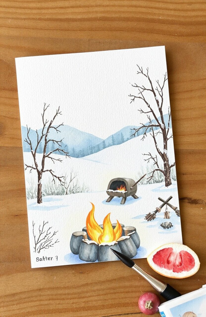 Snow-covered landscapes and warm fires. These cards are perfect for winter greetings.