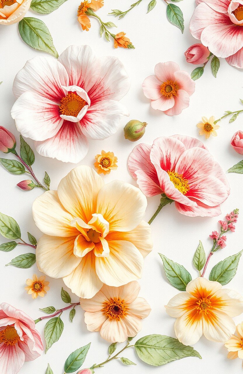 Soft petals and gentle leaves, all painted in light, airy colors. Floral patterns bring a touch of nature’s beauty to any occasion.