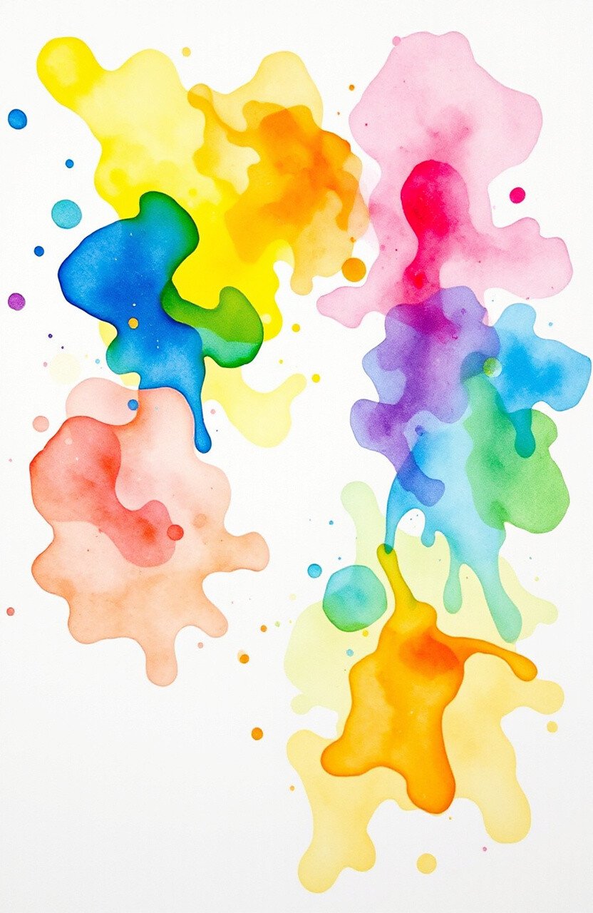 To create your rainbow splash, use a wet-on-wet technique. It’s affordable and fun, using just a basic watercolor set and some water.