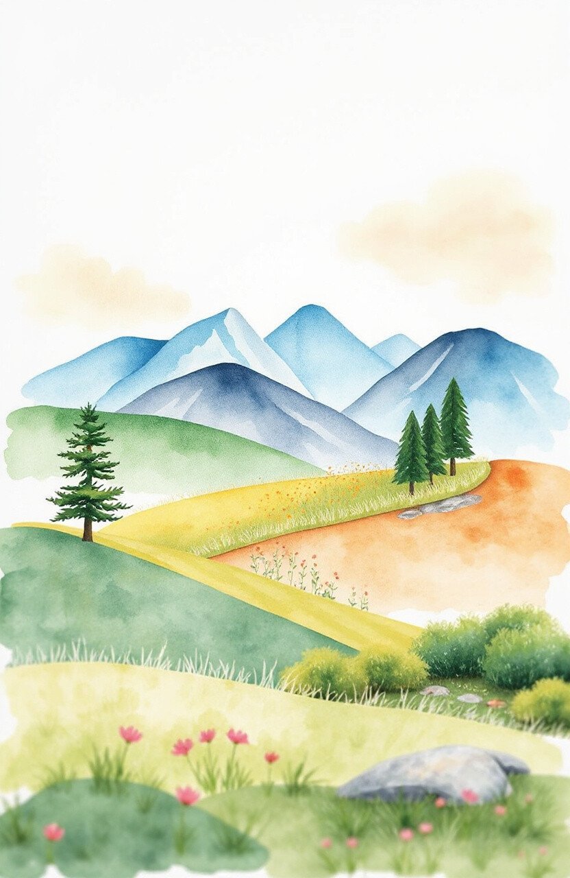 Experiment with blending different colors for the sky and land. It’s a relaxing and rewarding process.