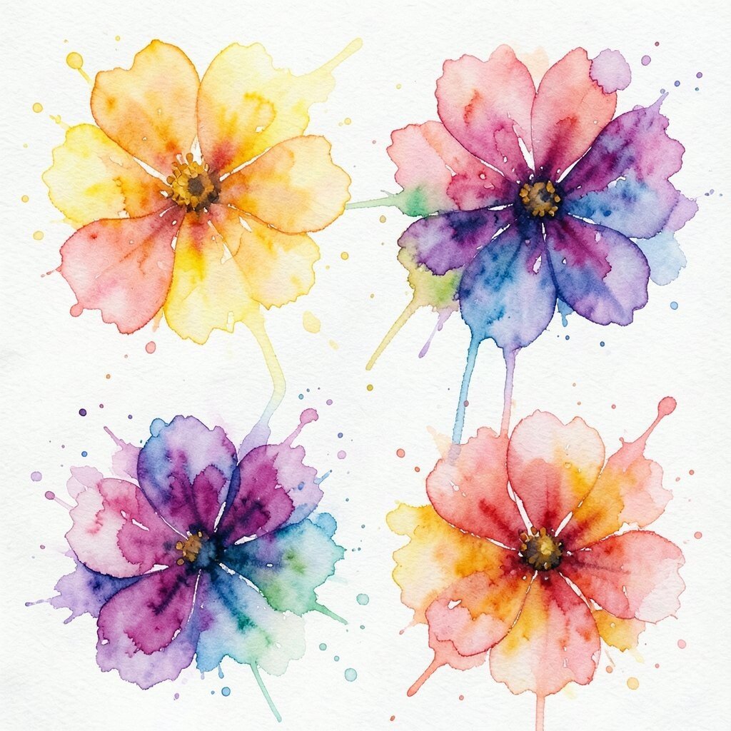 Watercolor blooms have a magical, organic feel that’s captivating. You can enhance this effect by varying the amount of water and pigment. It’s a cost-effective way to create stunning, vibrant compositions.