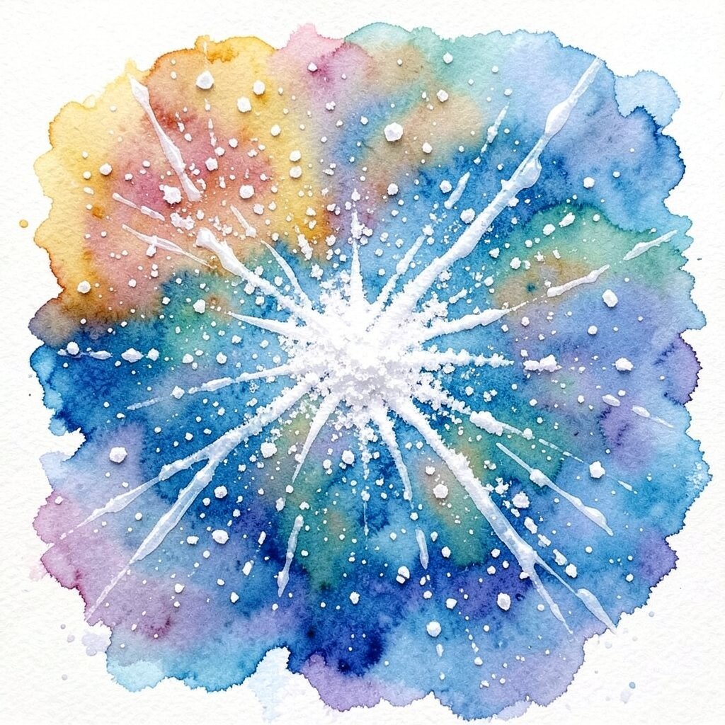 It’s like an enchanting science experiment right on your canvas! Try different grain sizes for varied effects. All you need is salt and a wet wash of color, making it a low-cost and fun technique to try. It’s perfect for adding depth and variety to your paintings.