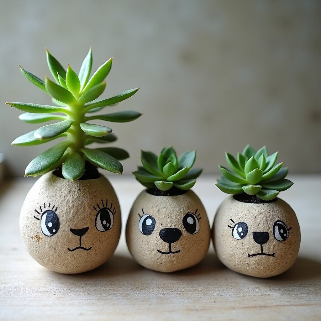 Each pet rock can have a face painted on it, adding personality and charm. They are perfect for desktops or windowsills, bringing a smile to anyone who sees them. The combination of greenery and whimsy is irresistible.