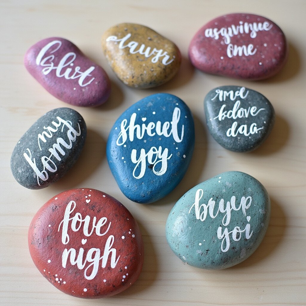 These stones make thoughtful gifts, tailored with personal messages. You can use stencils for even lettering or freehand for a personal touch. The possibilities are endless with the words you choose.