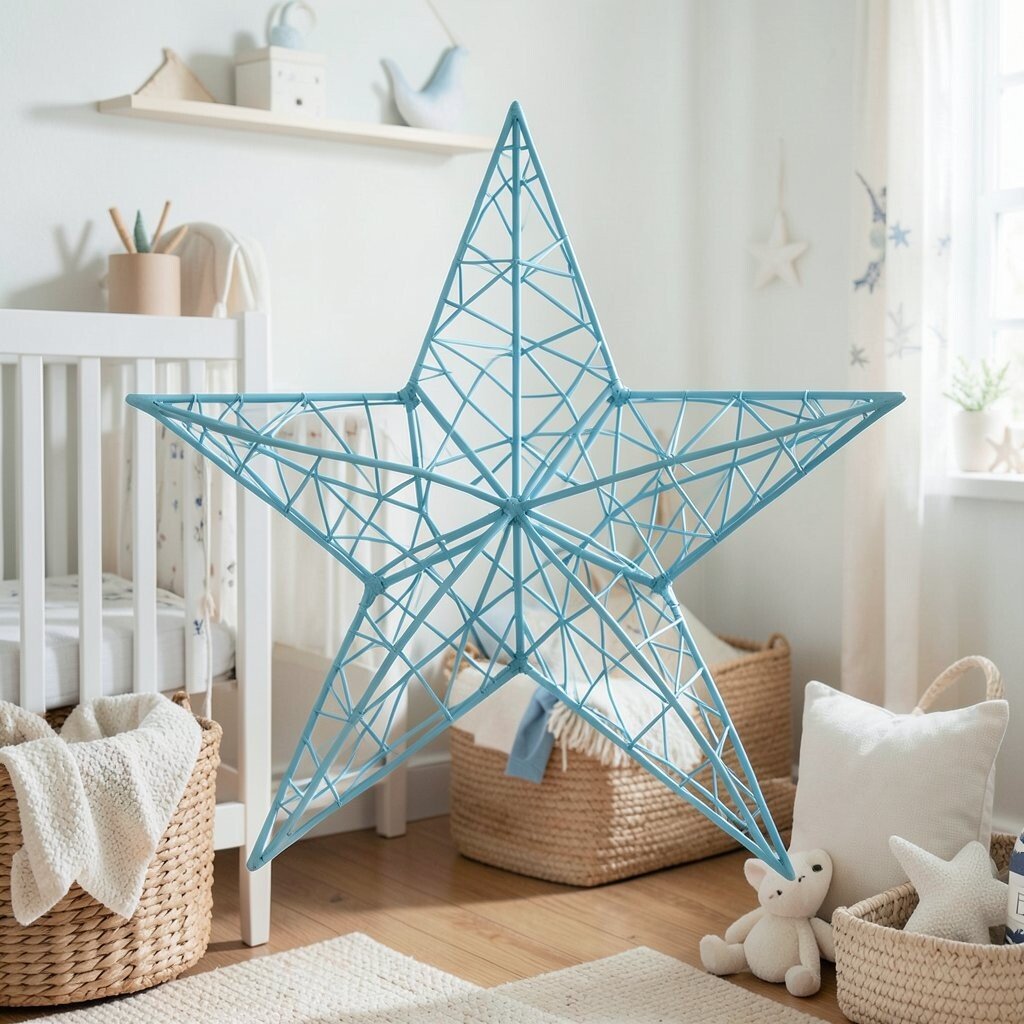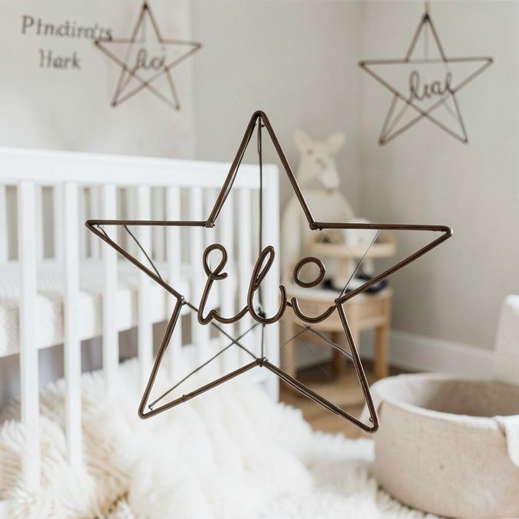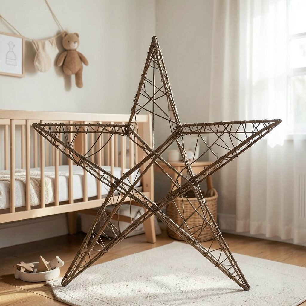 A twisted wire star offers an artistic flair. Its intricate design is perfect for adding a unique touch to the nursery. This star is both whimsical and modern.