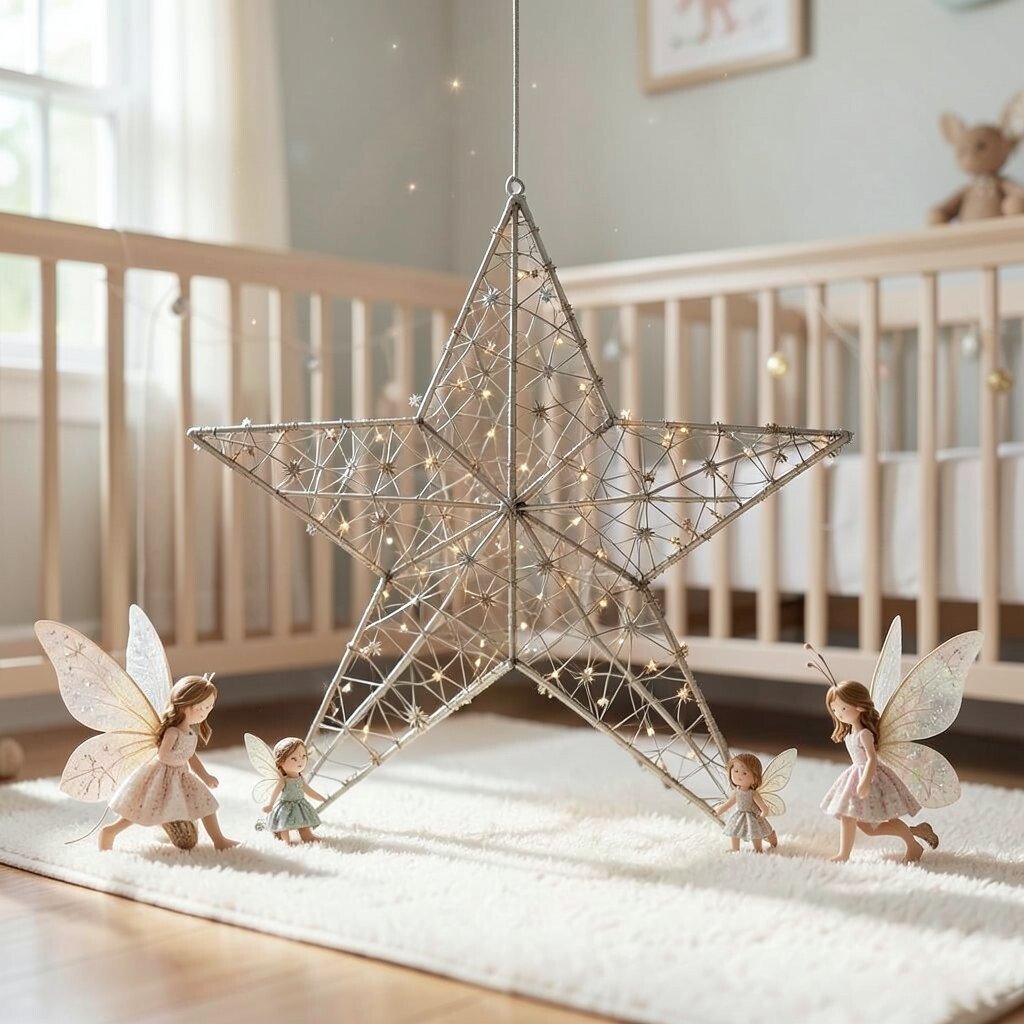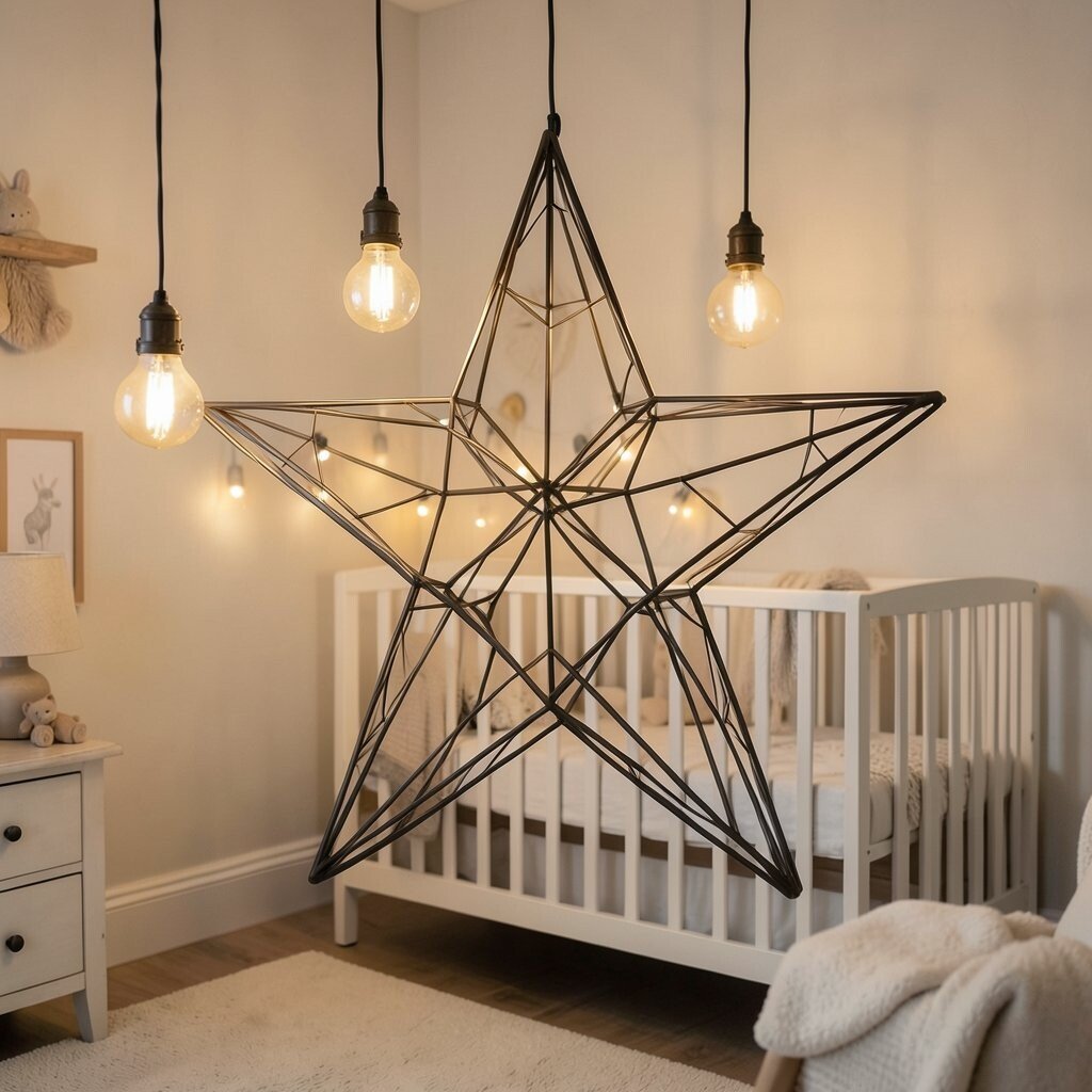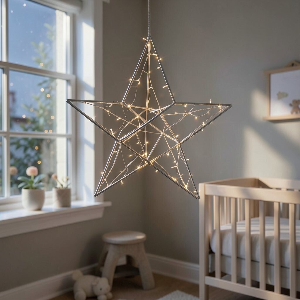 A twisted wire star offers an artistic flair. Its intricate design is perfect for adding a unique touch to the nursery. This star is both whimsical and modern.