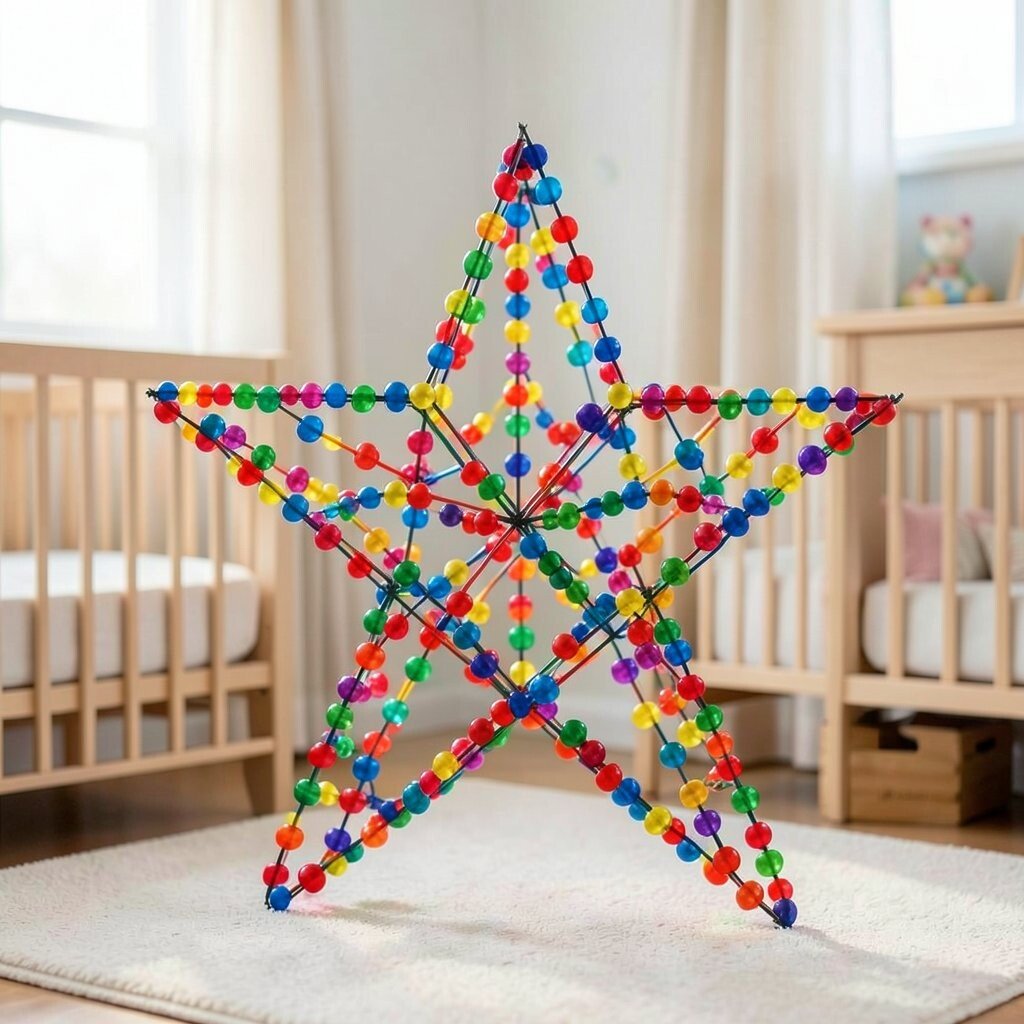 This star is made from shiny silver wire, offering a sleek and modern touch to your nursery. It’s perfect for catching the light and creating a twinkling effect that feels like a night sky. Hang it near a window where it can reflect the sunlight.