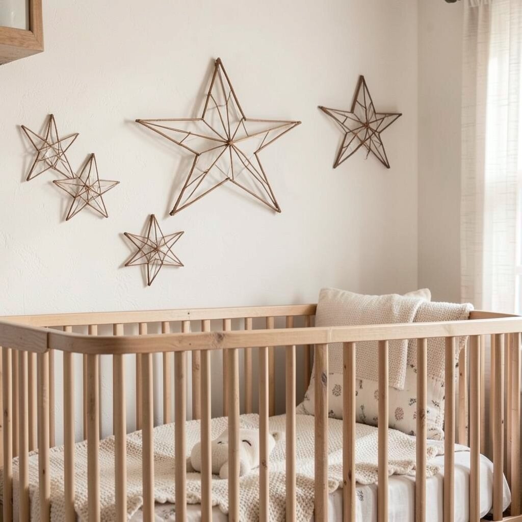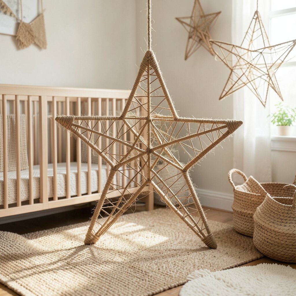 For those who love natural materials, a jute-wrapped wire star is ideal. It’s perfect for an earthy, organic nursery theme. The natural fibers add warmth and texture.
