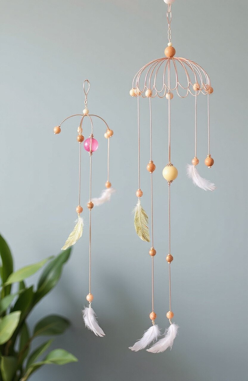 Create a mobile that dances in the air using wire. Attach beads, feathers, or small charms for a whimsical touch. It’s a delightful decoration for any room.