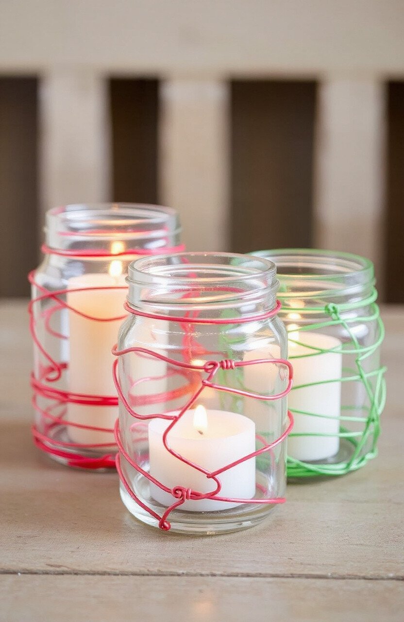 Give your candles a stylish home with wire wrapped holders. The wire can create intricate designs around glass jars. It’s a beautiful way to add ambiance to any room.