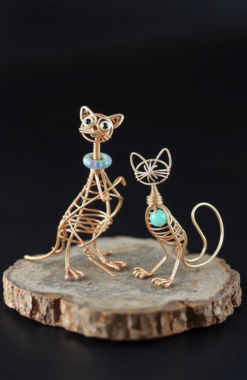 Create adorable animal sculptures using wire. Bend and twist the wire to form tiny creatures like birds or cats. They’re delightful additions to any shelf or desk.