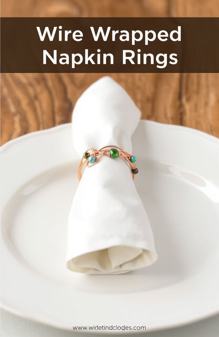 Make your table settings stand out with wire wrapped napkin rings. Twist the wire into shapes and add beads or charms. It’s a stylish way to dress up a dinner table.