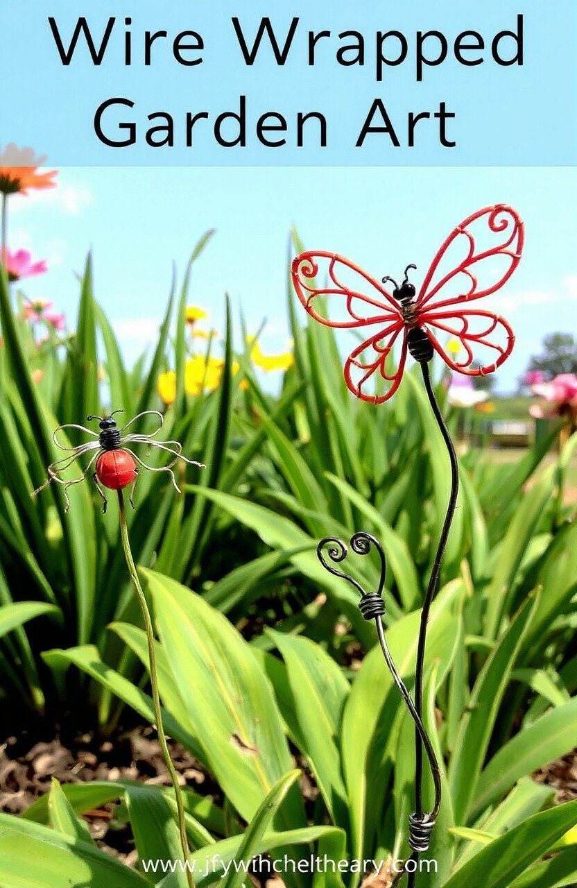 Add a touch of whimsy to your garden with wire wrapped art. Twist the wire into shapes like flowers or insects. It’s a creative way to decorate your outdoor space.