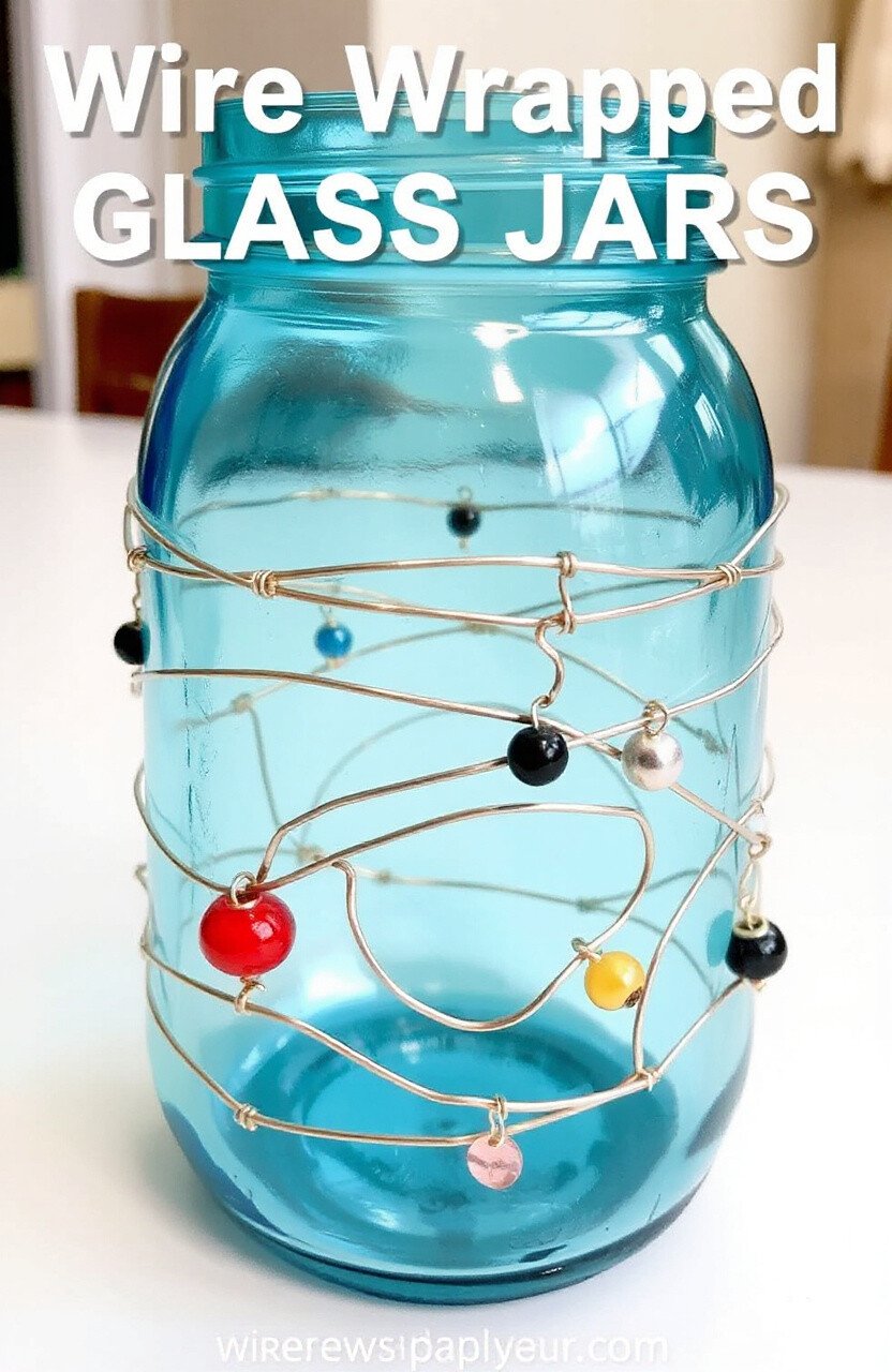 Turn ordinary glass jars into beautiful decorations with wire wrapping. Twist the wire around the jar and add beads or charms. It’s a creative way to upcycle old jars.