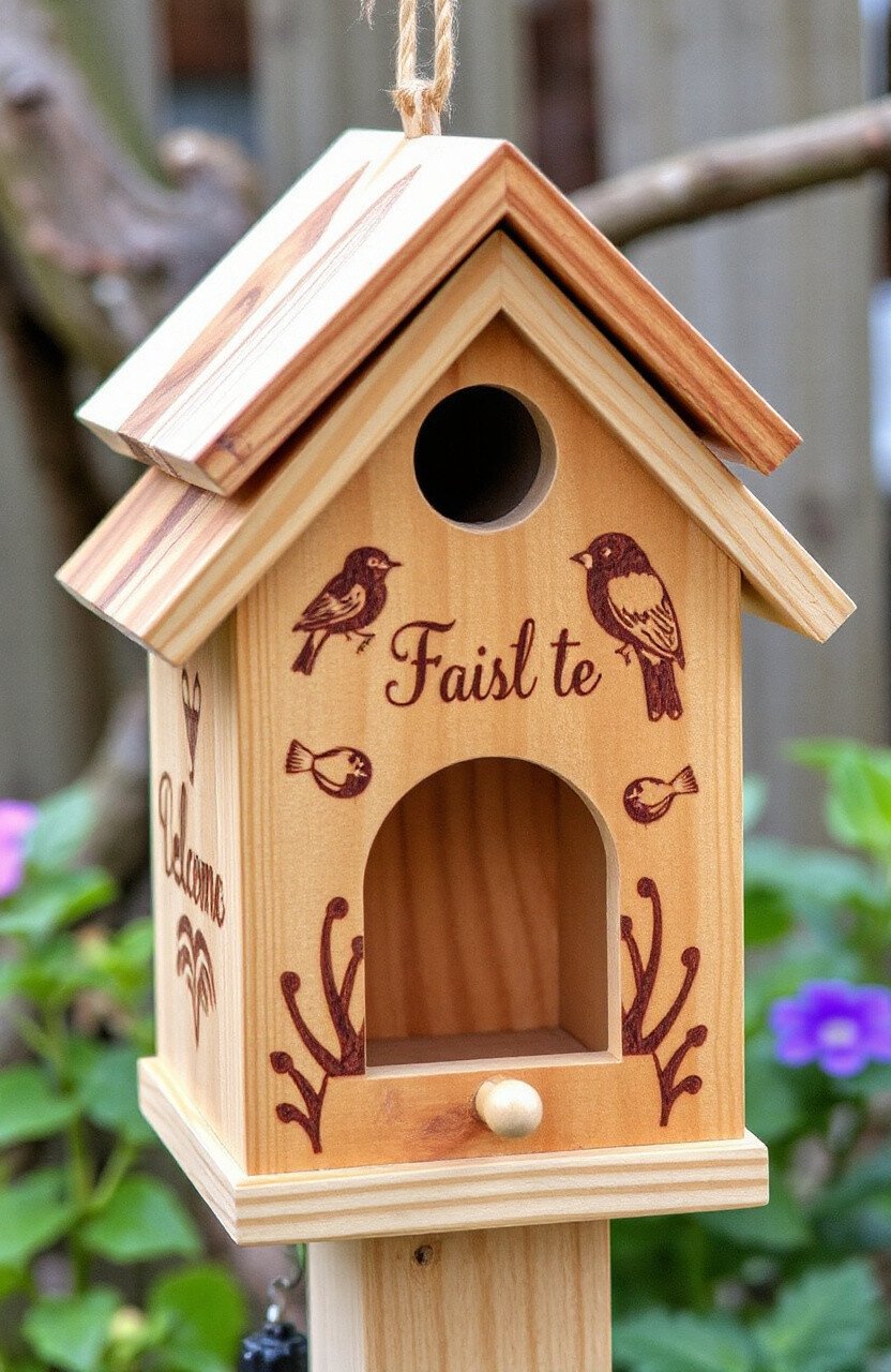 Birdhouses become charming garden decor with wood burning. Burn patterns or names onto the wood. They welcome feathered friends in style.