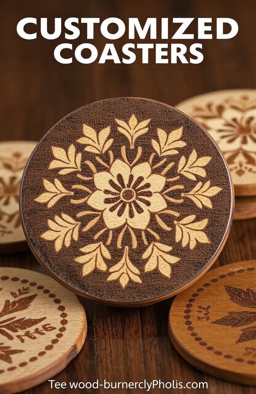 Turn plain coasters into works of art with wood burning. Create themes like floral patterns or geometric shapes. They are perfect for protecting your furniture in style.