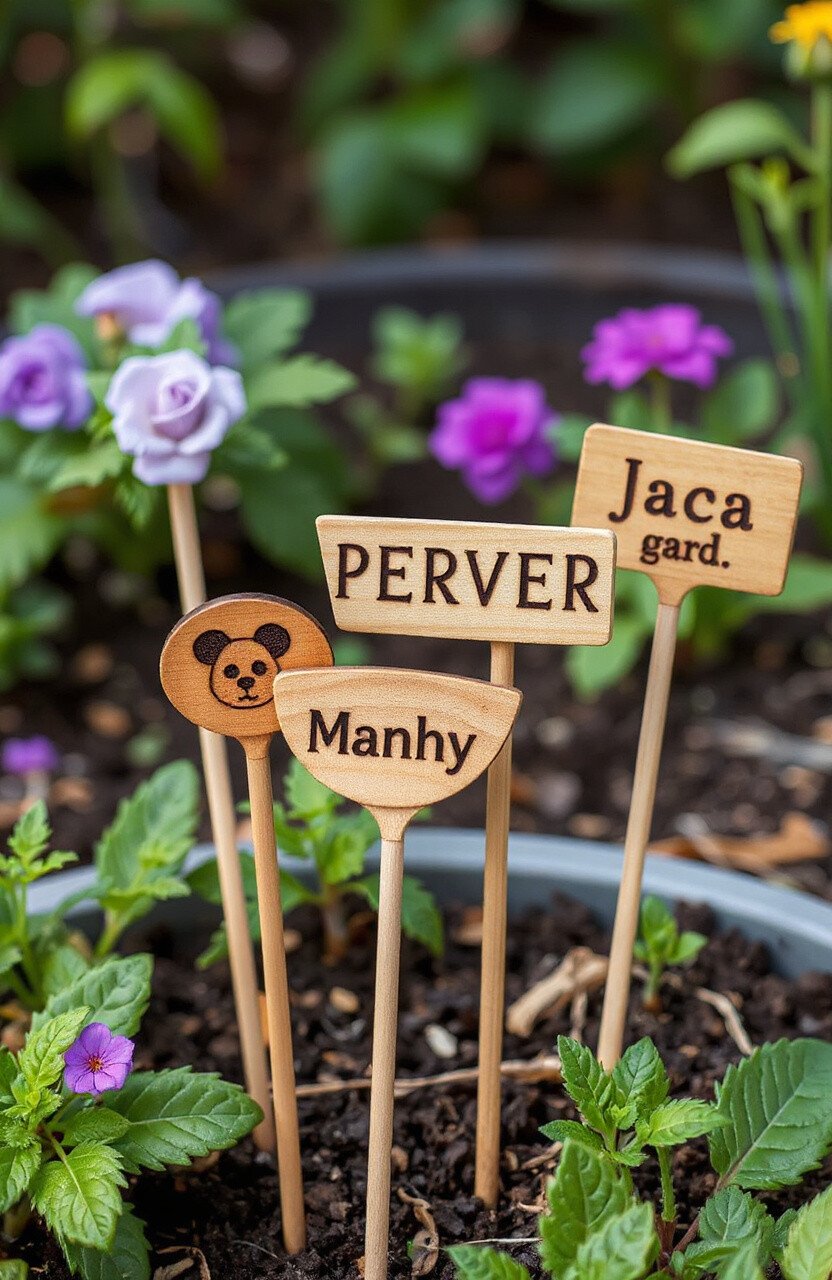 Gardeners will love creative plant markers. Burn plant names or small images onto wooden stakes. They add a personal touch to any garden.