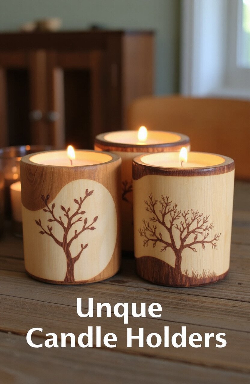 Candle holders can be more than just functional. Burn beautiful designs into wooden holders for a warm, inviting glow. They create a cozy atmosphere.