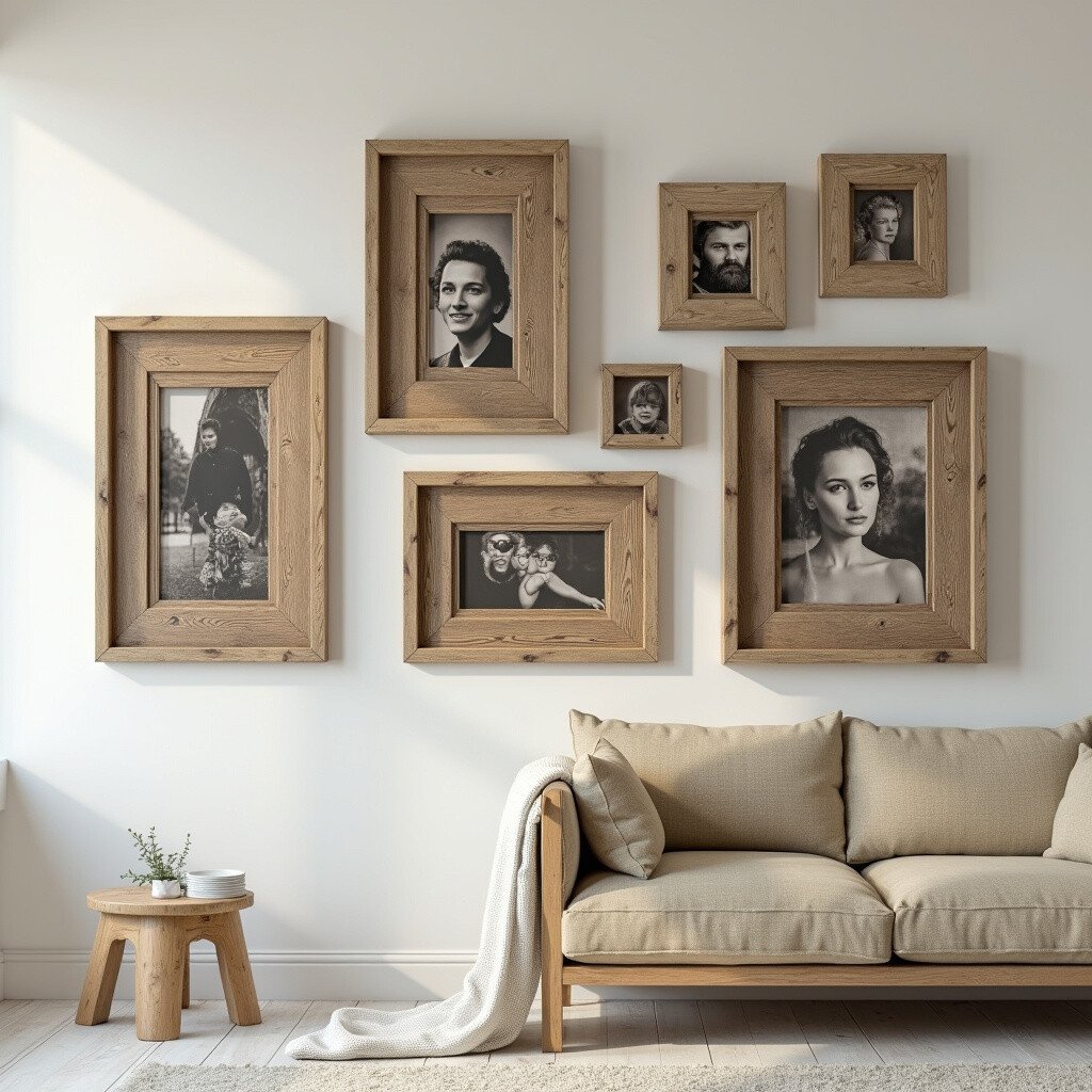 This style is great for beach house decor or shabby-chic themes. It brightens up any wall with its light color. Consider using it for family photos to add warmth and coziness.