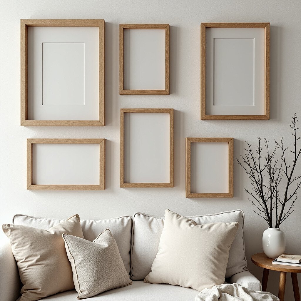 Pallet wood frames have a casual, laid-back feel. Made from recycled pallets, they often feature a mix of wood tones. This adds a dynamic element to your wall.