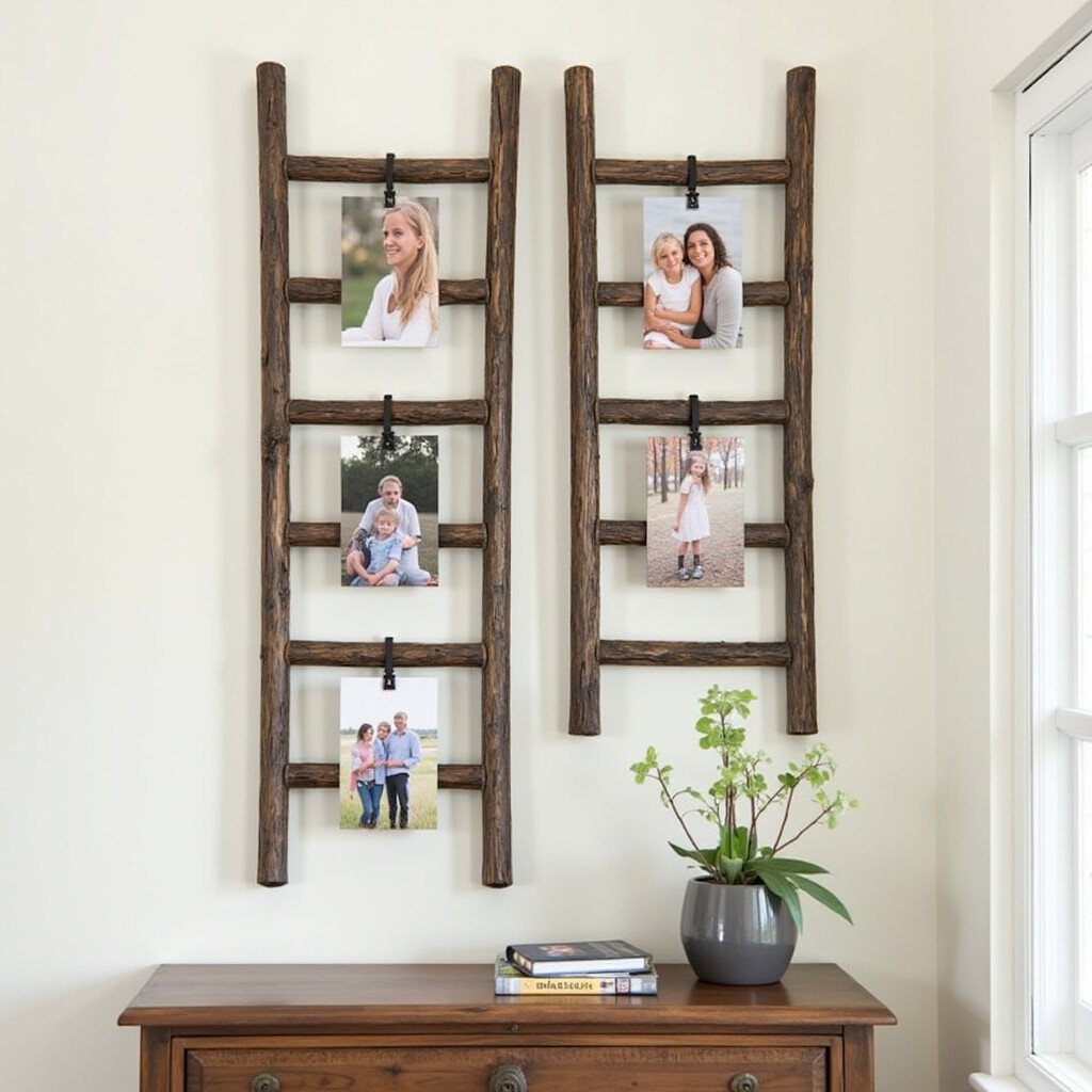 The ladder structure adds height and interest. It’s perfect for a rustic or industrial look. Change photos easily for a fresh display.