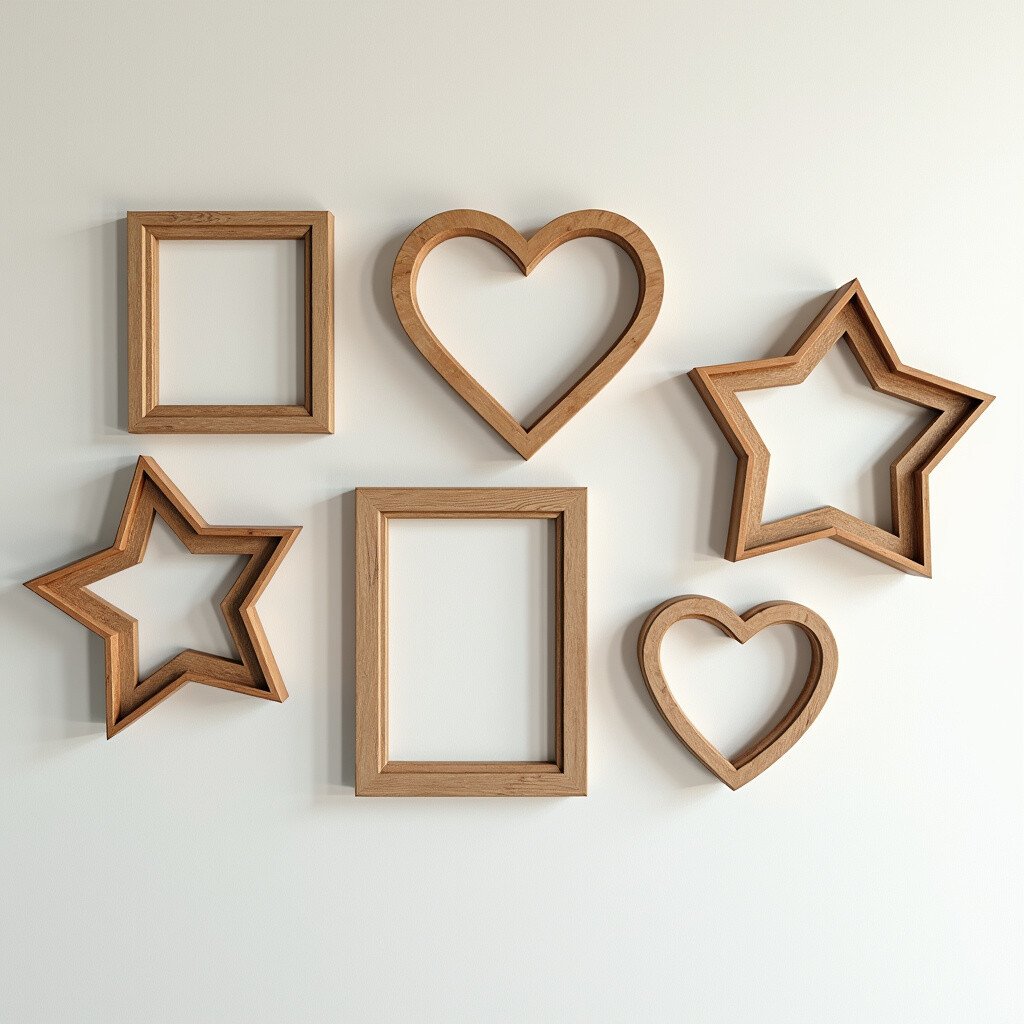 Shaped frames add a playful touch to your gallery. Available in various shapes like hearts, stars, or circles. Perfect for kids’ rooms or whimsical themes.