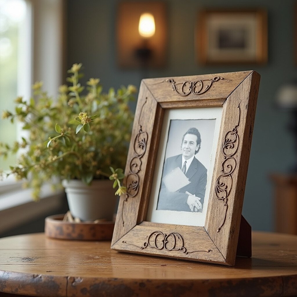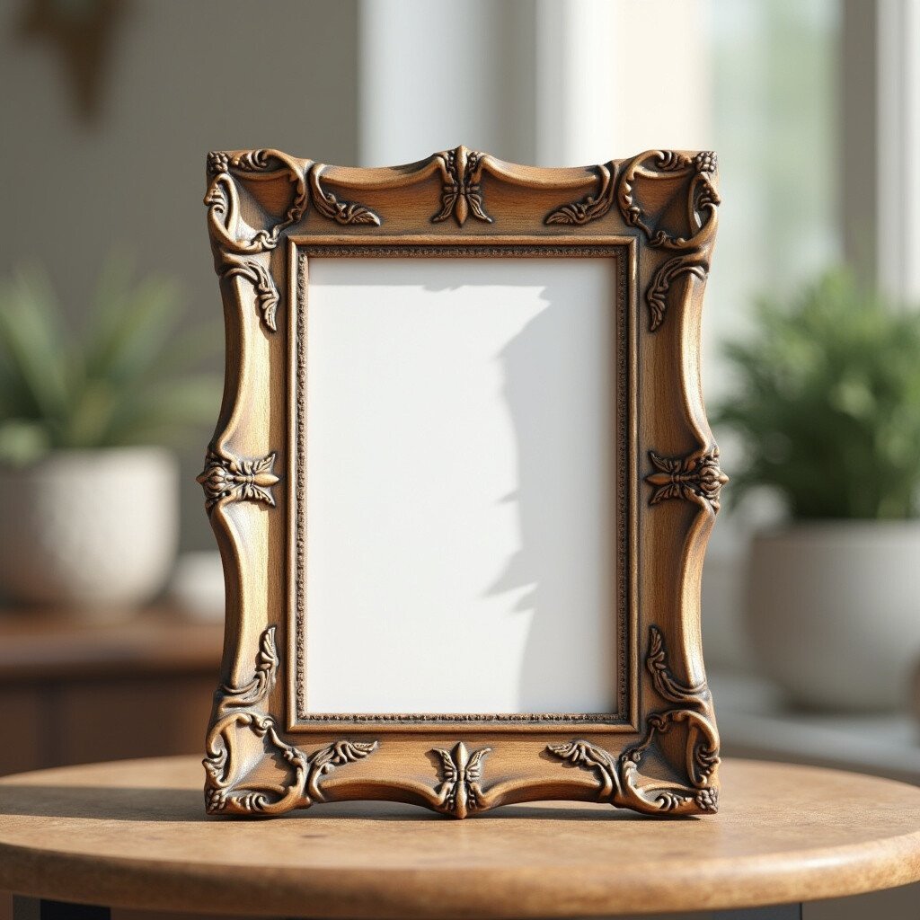 Picture a simple, elegant frame with gentle curves and intricate designs. This style brings timeless beauty to your table, perfect for those who adore traditional aesthetics. Use it to frame old family photos or art prints to create a warm, inviting atmosphere.