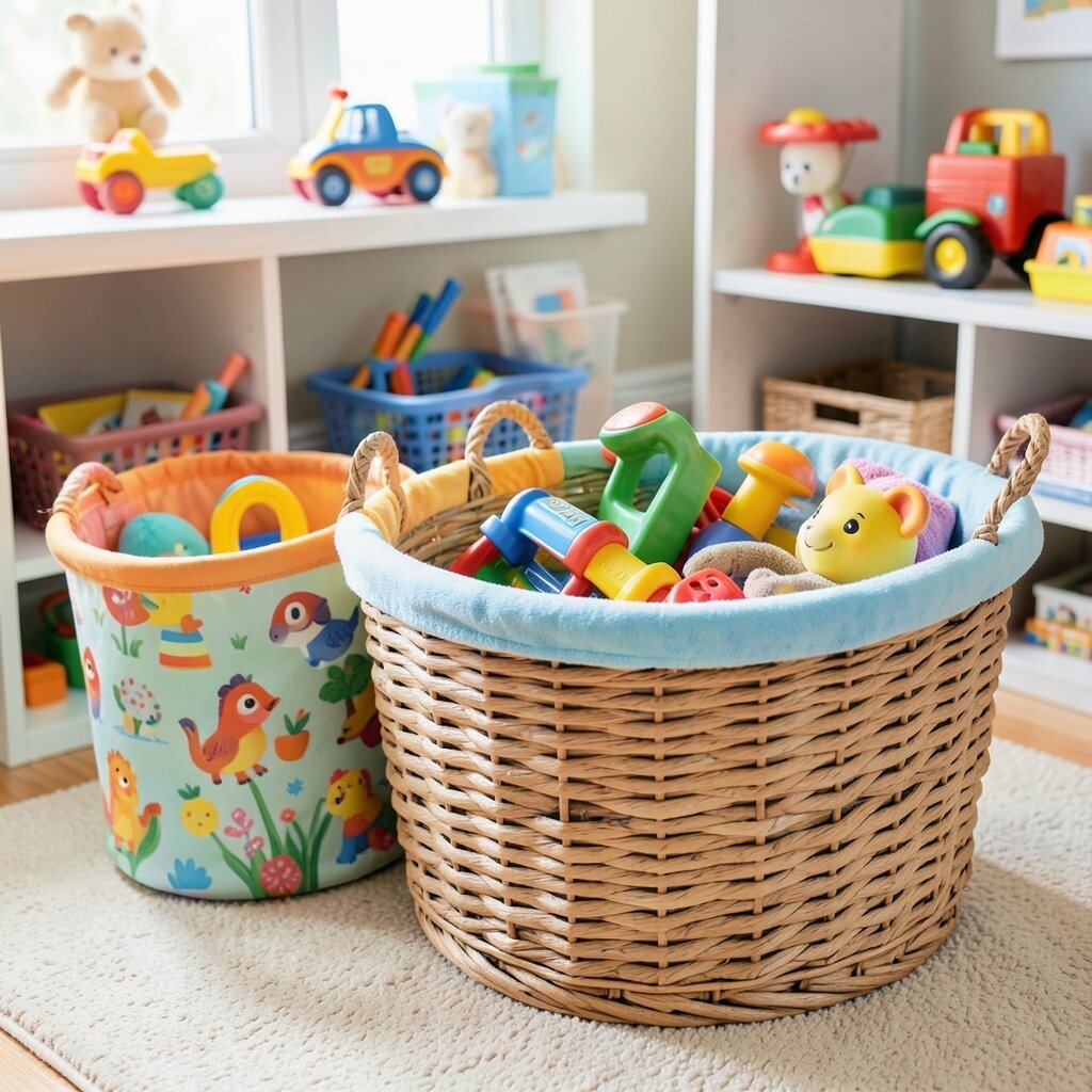 Choose bright colors or fun patterns to match the playroom decor. These baskets are usually durable and cost around $25 to $40.