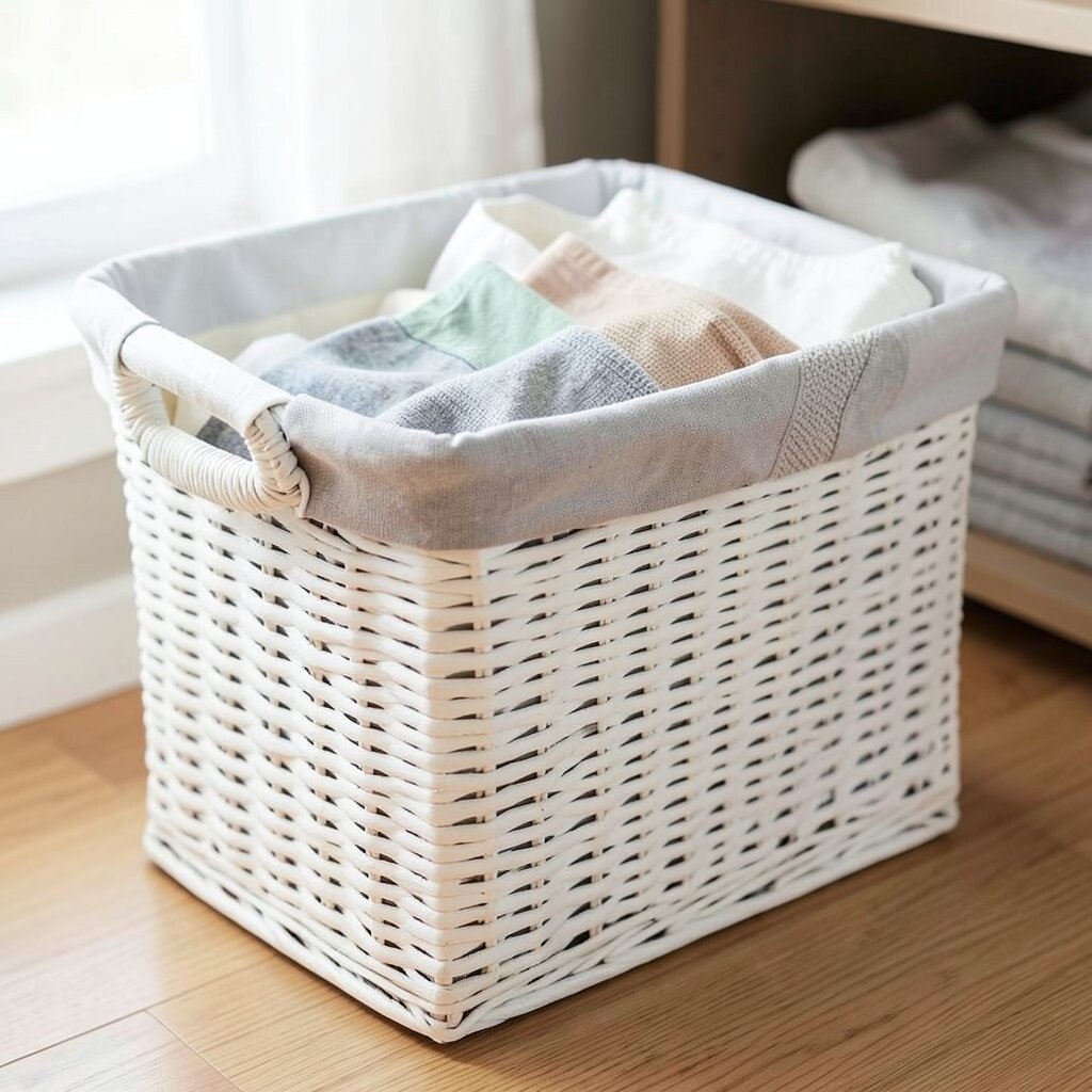 Select a basket with sturdy handles for easy carrying. Go for a classic white or gray to keep the look fresh, usually costing between $30 and $50.