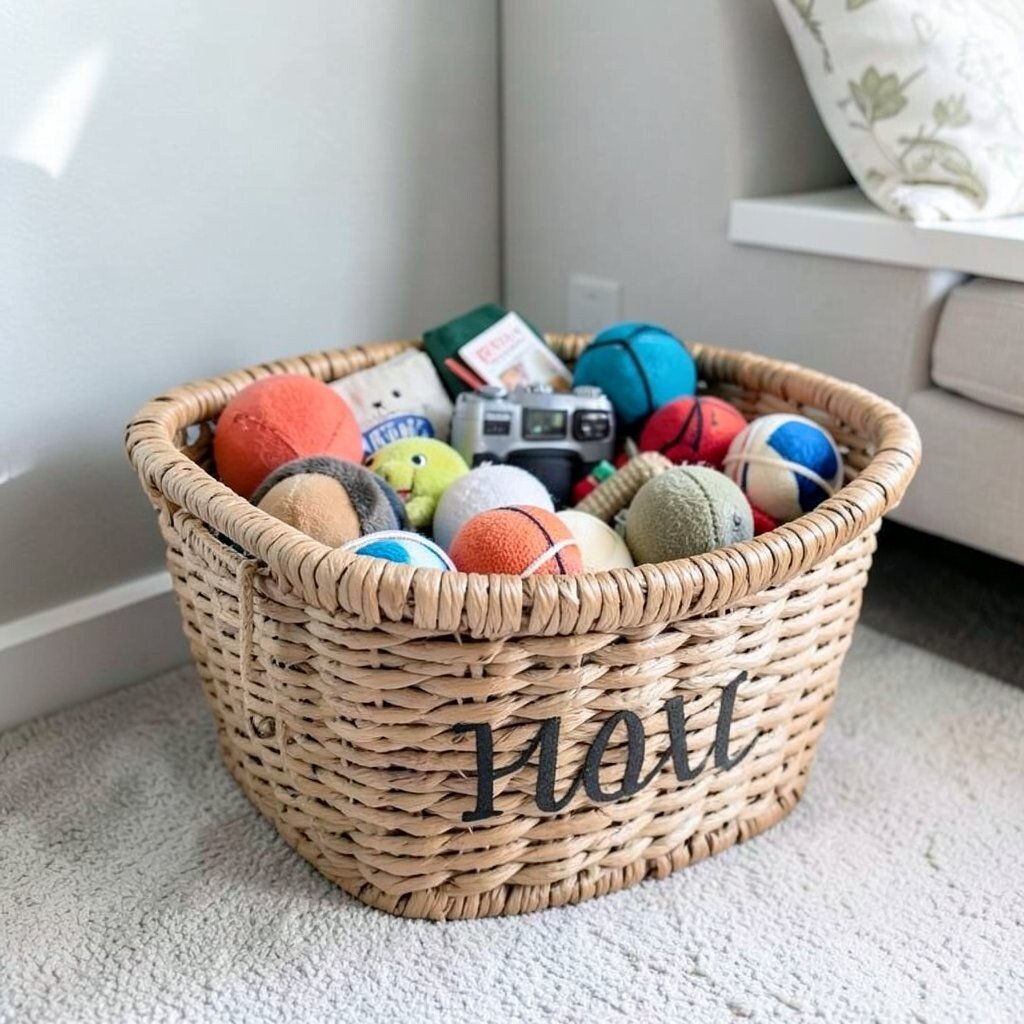 Your furry friend’s toys deserve a stylish home, too. A woven basket makes it easy to gather all the chew toys and balls in one place.