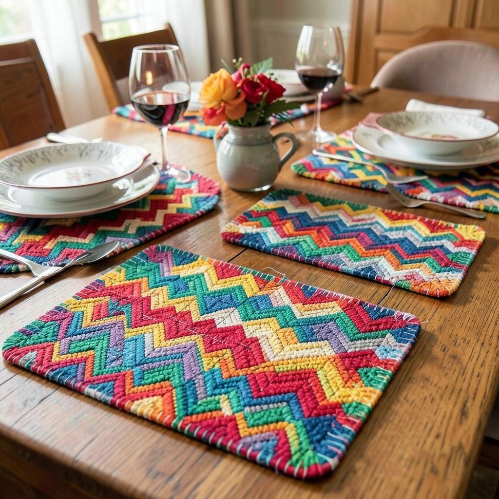 Zigzag stitched placemats can transform any meal into a festive occasion. Their bright patterns bring life to your table, making dining more enjoyable. You can match them with table runners for a cohesive look.