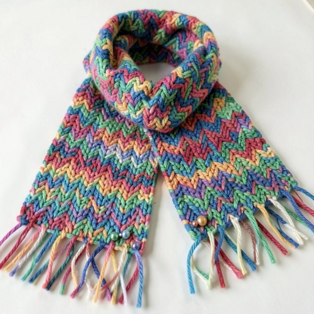 Play with different thread colors and materials to make each scarf one-of-a-kind. Add embellishments like beads or fringes for extra flair. A zigzag scarf is not just an accessory; it’s a statement piece.