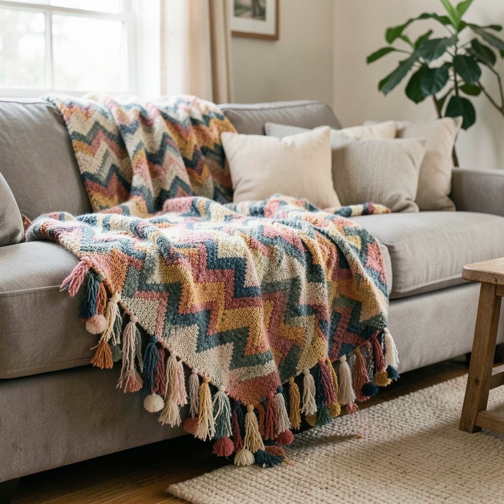 Enhance your living room or bedroom with a decorative throw blanket featuring zigzag stitches. These blankets add warmth and style, making any space feel more inviting. Choose colors that complement your existing decor.